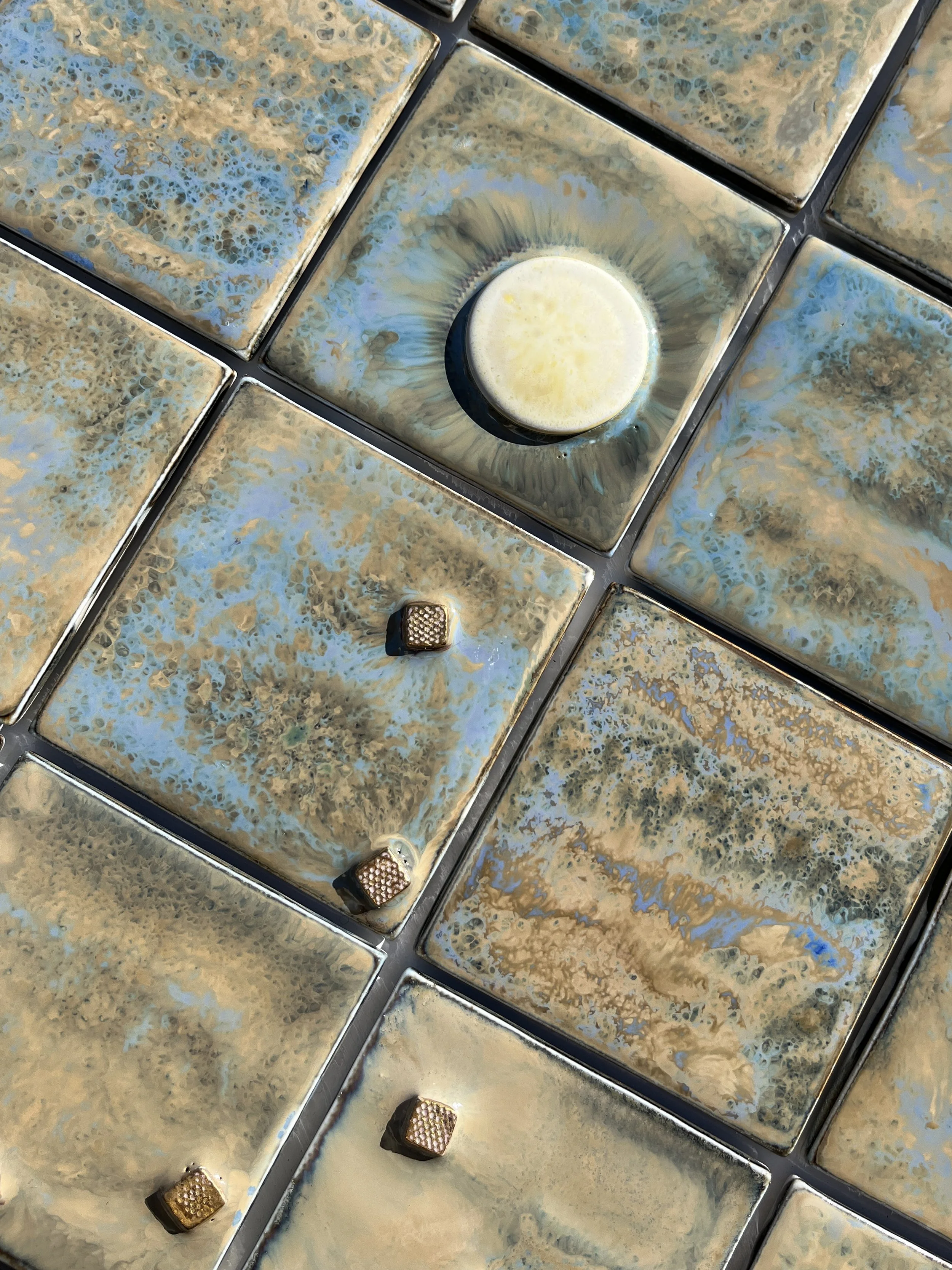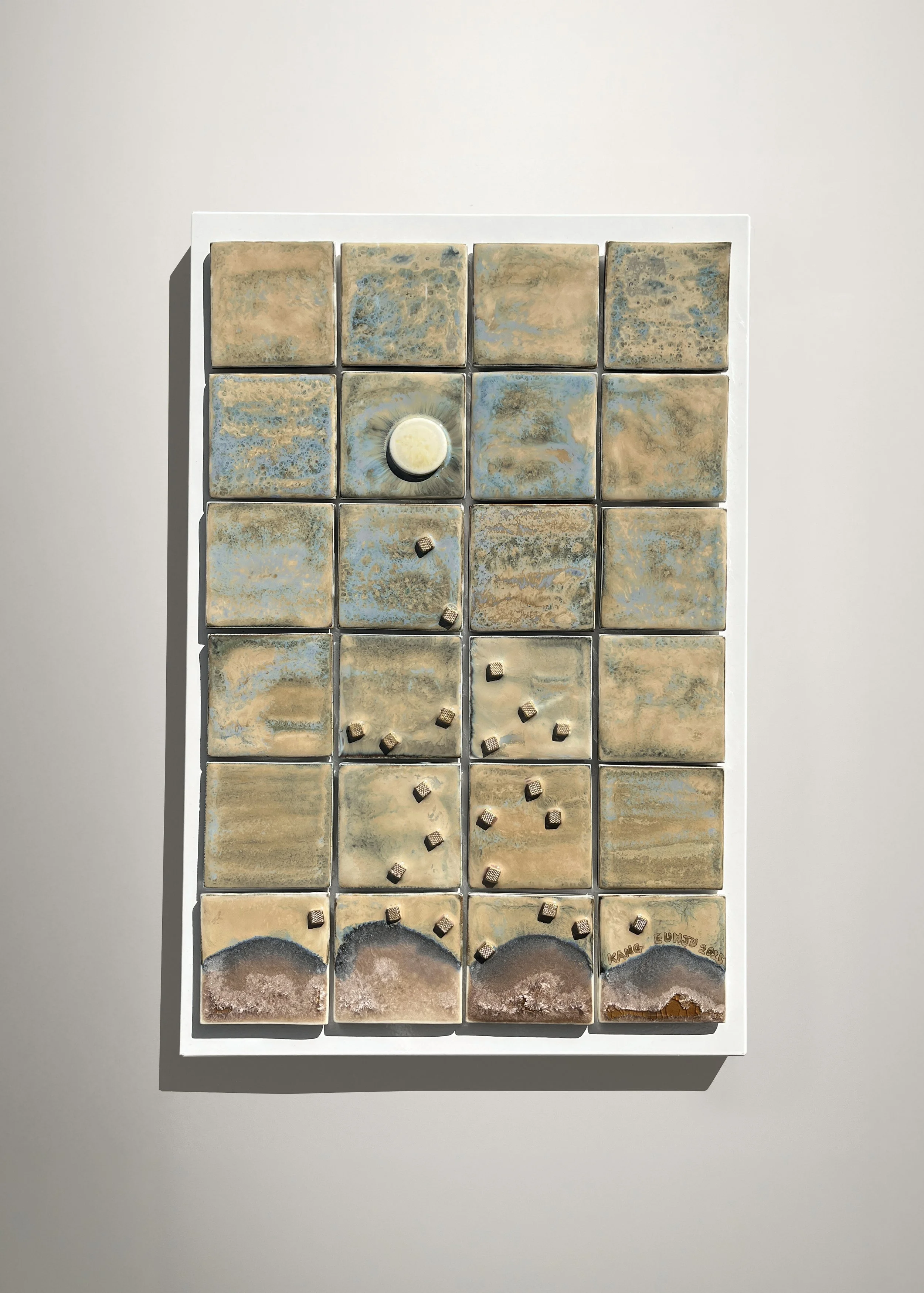 Glazed porcelain mounted on a metal board